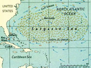 De Sargassozee strekt zich uit over een groot gedeelte van de Noordelijke Atlantische Oceaan, ten westen van de Verenigde Staten.