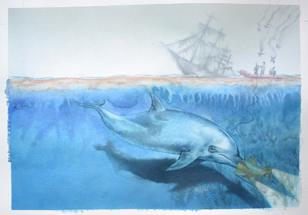 De kaft van het boek en ook de kaartjes binnenin werden zoals bij de andere boeken in de serie van 'Het dolfijnenkind', door Marijke Meersman getekend.